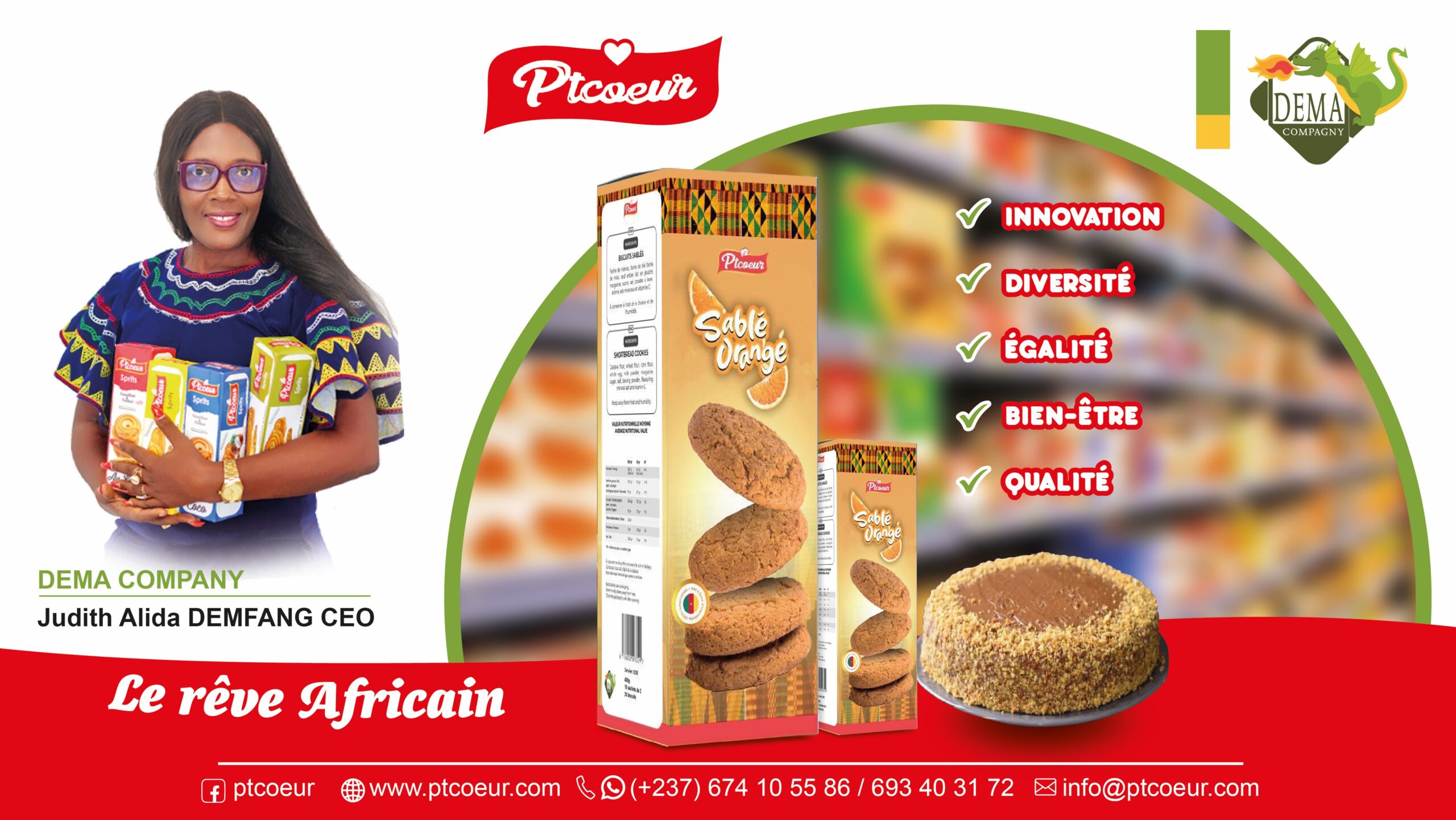 Fondée en 2015 par Mme DEMFANG KAMGO Judith Alida, une entrepreneure, leader, visionnaire et dynamique qui a su transformer une idée en une entreprise prospère et innovante du nom de DEMA COMPANY SARL qui est une industrie de fabrication de biscuit 100% camerounais avec pour objectif la valorisation des produits du territoire et la propulsion du Made in Cameroon à travers la marque de biscuit PTCOEUR.
